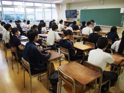 いずれ近い将来、このコロナ禍の活動制限は終わりがきます。この2年間の活動が制限されたことによって、逆にプラスになったと考えられることを私たち人間はしっかりとらえる必要があります。何でも元に戻す、という単純な考え方ではなく新たに得られたメリットを人間社会で今後に活かしていくことをしないと進歩はありません。みなさんのすばらしい感性でぜひ生活の質をあげてほしいと思います。例えば、放送委員会の昼放送の内容や美化委員会、保健給食委員会のポスターなどはこの2年間で明らかに量、質ともに進化しています。日常の学校生活でも力を発揮できるのが、フナキボ生の本当の力だと思います。今後の活躍を期待しています。