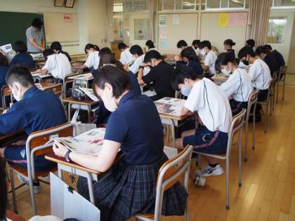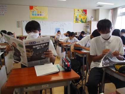 NIEタイムでは、どこの学年でも皆それぞれのスタイルで新聞に向き合っています。