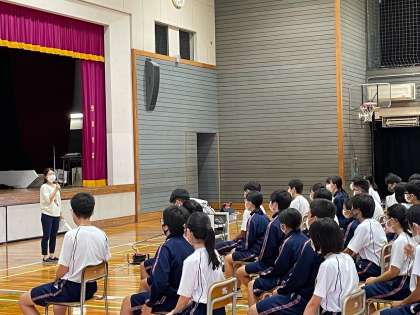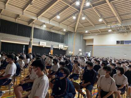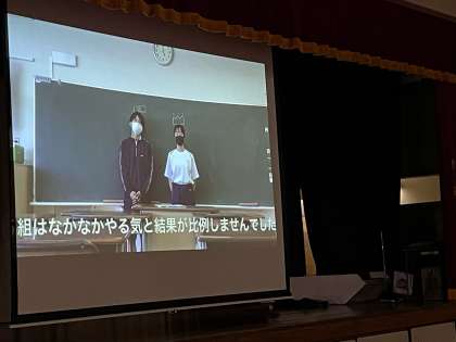 昨日の3年生の1時間目は学年集会でした。学期の反省は各クラスの学級委員が作成した動画で行いました。どのクラスもユーモアがあり素晴らしい出来栄えでした。