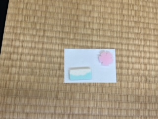 お菓子は夏らしい、なでしこと夏河原です。暑い中お稽古に来る生徒にちょっと高級なご褒美です。(大橋)