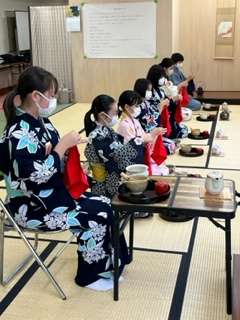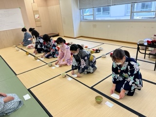 一年生も2回目の着付け。パッパッとスムーズに進んでいきます。すごいすごい。今日は、自分達だけで準備もできました。まだ流れるようにとはいかないけど、協力しながら進んでいます。(大橋)
