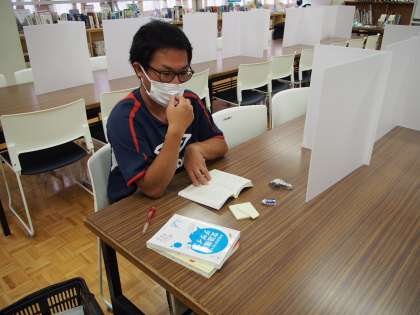 夏休み中は先生にとっても2学期の準備をする貴重な時間。これは昨年の様子。図書室で2学期の準備をする英語科、社会科の先生たち。英語科の先生は今年度区内の中学校に異動しましたが、きっと異動先でも頑張っていることでしょう。