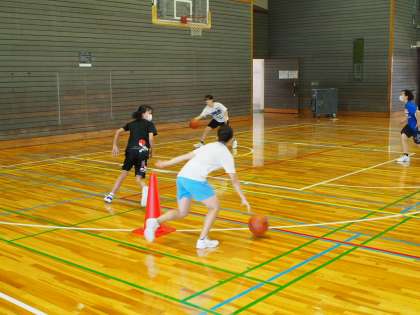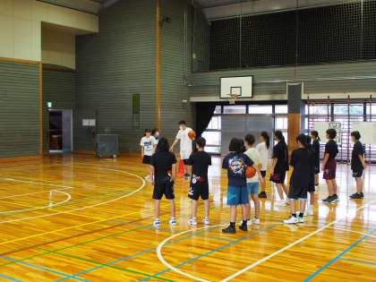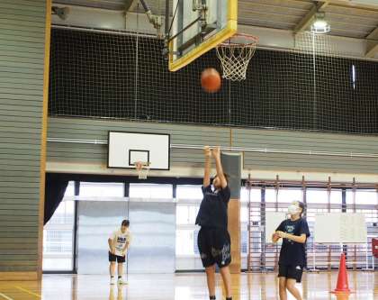 エアコンがついていても、その恩恵をほとんど感じられない体育館ですが、そんな中でもバスケットボール部はゴールをめざしています。