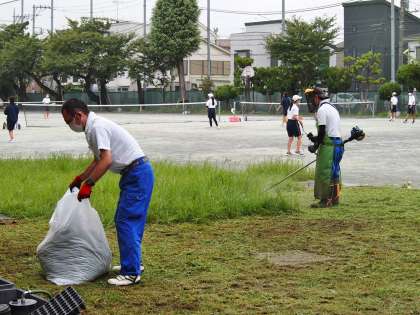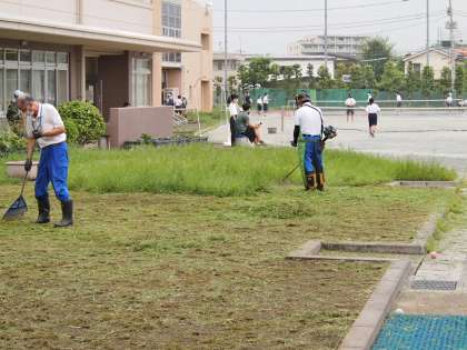 今日は校庭の草刈りも行われています。草を刈ったときの独特の香りがあたりに漂っていました。