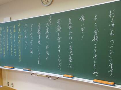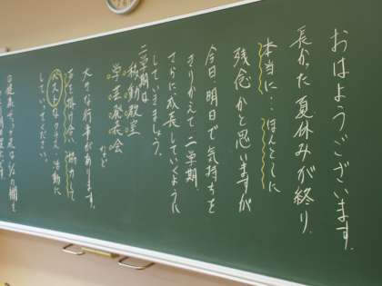 7時過ぎに校舎を回ってみると、昨日の準備出勤後に書いた各担任からのメッセージがありました。読んでいくと、久しぶりに学校が始まる期待と不安の生徒に対する愛情豊かなメッセージが並んでいました。