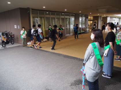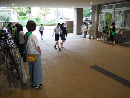 今日から船橋希望学舎のあいさつ運動です。1日目、フナキボの校門では、保護者の方が新学期を迎えて登校するフナキボ生に声をかけてくださっています。