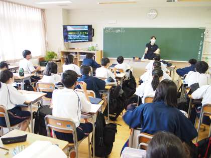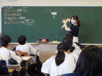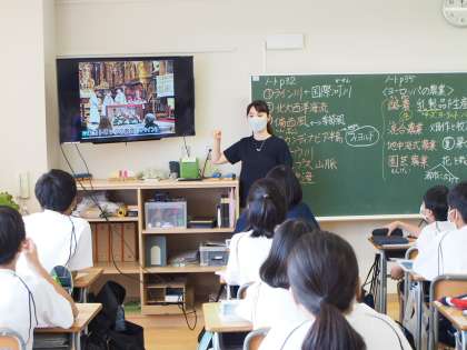2学期早々、今日は朝から「Wi-Fiがつながりません」と各教室から次々に連絡が来ました。どうも通信施設の不具合が発生している模様。いつもタブレットを駆使して授業をしている社会の授業はどうしている?と思い、教室へ急行すると、さすがです!慌てず騒がず、板書を駆使し、黒板に図を描き、体全体を使い、ICT並の分かりやすい授業を展開していました!