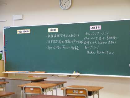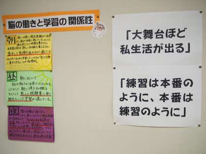 11期生の教室には、はやくも進路選択に向かい心構えを示した指針が掲示されていました。よく読んでいくと、かつての私にも思い当たることばかり。そして、早くも中間考査、ですね。