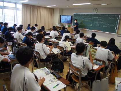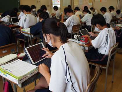 近畿地方のニュータウンについて学んでいます。当然ですが、マップと検索のアプリを駆使して授業を深めています。