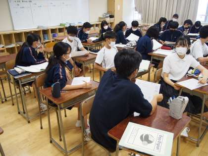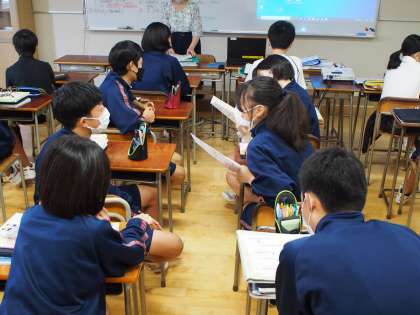 こちらは別のクラスの英語の授業です。このペアワークをみていて思うのは、ほんとうに楽しそうにやっていること。気持ちが表情にあらわれています。