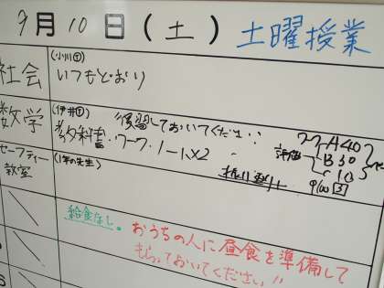 土曜授業の朝です。今日は3校時にセイフティ教室が予定されています。お昼ごはんのことまで、心配してくれるなんて…すばらしい。