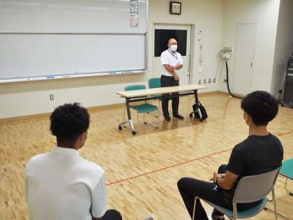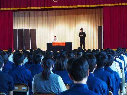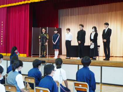 今日のセイフティ教室は例年と違い劇団の方に演劇で、薬物乱用とSNSトラブルの怖さを伝えてもらいました。迫真の演技に背筋を伸ばして見入るフナキボ11期生。最後の生徒代表お礼の言葉では、逆に劇団の方が背筋を伸ばして聞いてくださっていました。終了後は成城警察の担当の方に、区内の中学生が巻き込まれる事件のことなどについてお話を伺いました。