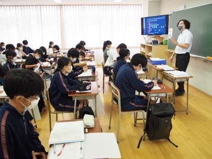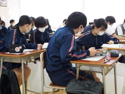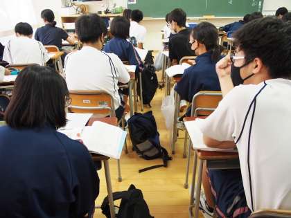 教科書を読みながら物語を描いた作者の心情に迫っています。それにしても「隣と確認してください」と言われると間髪入れずすぐに確認し合います。普段から、それにもまして一年生から積み上げてきた結果ですね。