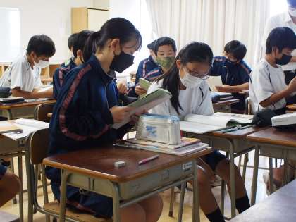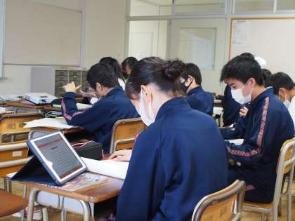 こちらもペアワークをやりますが、最後の5分間はタブレットで個人リーディング練習でしめくくりました。