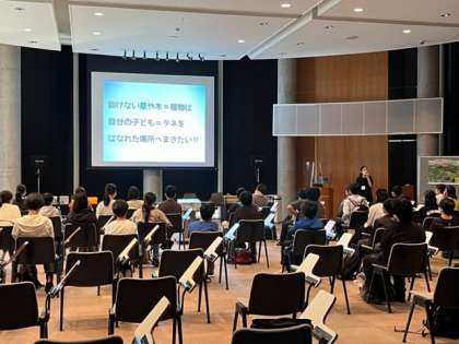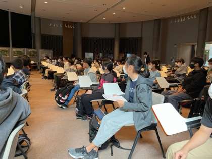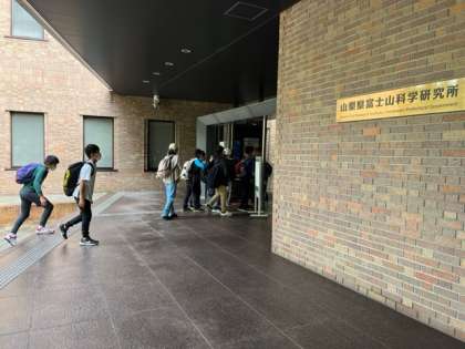富士山科学研究所に到着。富士山周辺の植物について学んでいます。