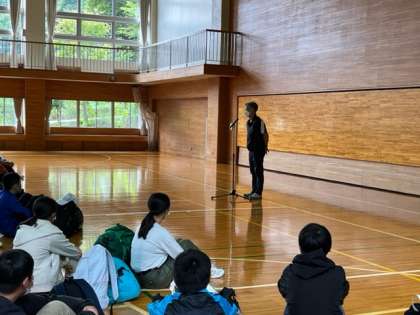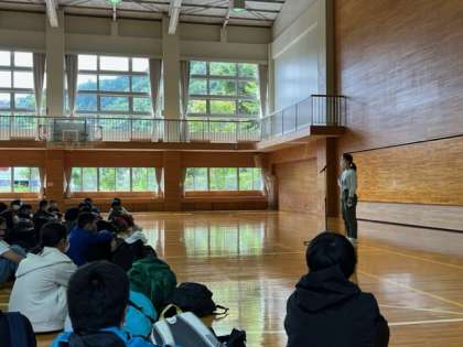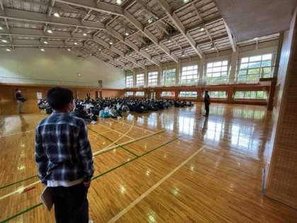 河口湖林間学園の体育館は広い、明るい、綺麗な、の三拍子が揃っています。窓を開けると台風といえども富士山からの爽やかな風が入ります。