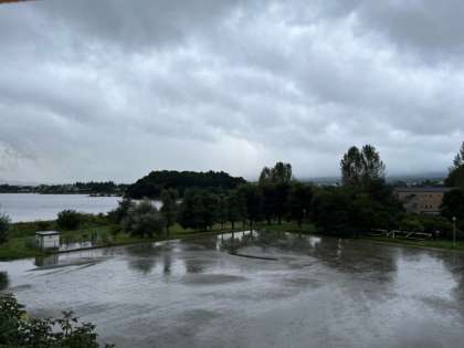 今日は雨。残念ながら富士山は見えず、河口湖も霞んでいます。