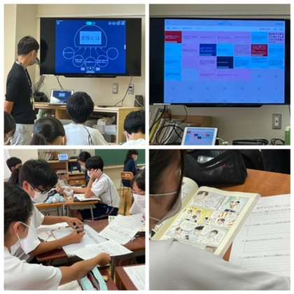 先週から始まっている3年生のローテーション道徳。各先生方、工夫の凝らされた導入で引き込まれます!自分の家系図を使って家族を考える、漫画やアニメの登場人物からライバル関係を考える、など。そして生徒たちの意見の共有はタブレット、ロイロノート、思考ツール、黒板、ホワイトボードなど、生徒の関心を高めるツールを駆使しています。次はどの授業かな?毎週楽しみですね!先生たちもより良い授業をつくる刺激になります。(岩崎)