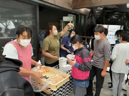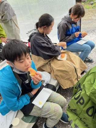 作ったバターをパンに付けて食べています。やはり手作り、本物はは違います!
