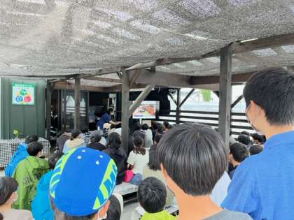 最後に子牛の誕生の様子や「いただきます」と言って食べる意味についてお話しをしていただきました。途中から牧場の方の話し声が聞こえないほどの豪雨が降ってきましたが、13期生は真っ直ぐ前を見つめ話を聞こうとしています。ここにも成長したい姿を感じました。