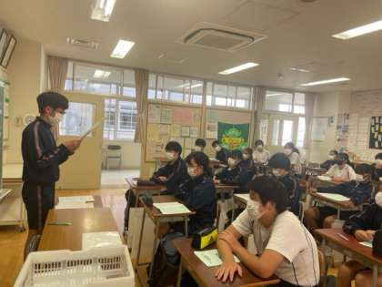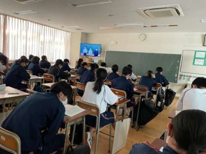 生徒会役員選挙が動画にて行われました。3年生、よく聞いていました。