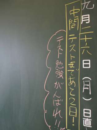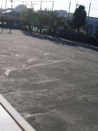先週までの台風と大雨がうそのように秋の朝陽がまぶしいフナキボの朝です。校庭には先週まで降った大雨の痕跡が渦巻きとして残っています。