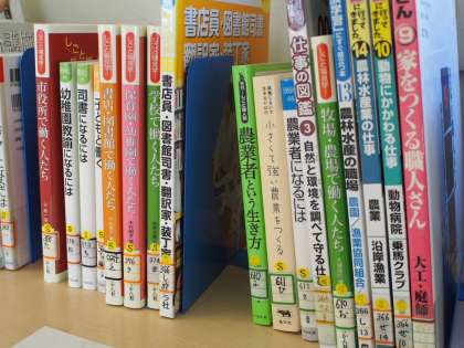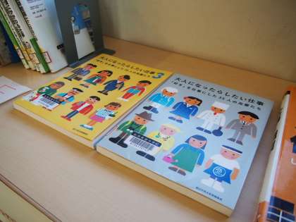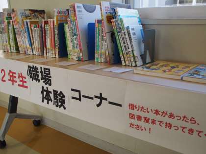 12期生の廊下には、2週間後に迫った職場体験の関連本コーナーがあります。