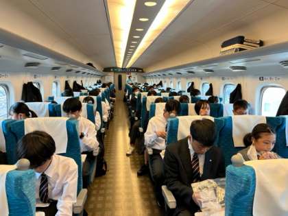 当然ですが黙食。この前まで楽しくキャッキャッしながらもトランプをしていましたが、「いただきます」をした瞬間から車内に静寂が広がりました。さすがフナキボ11期生です!