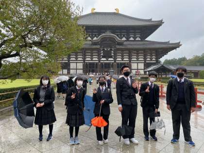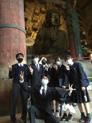 東大寺大仏殿に到着しました。これから全班が通過する予定です。