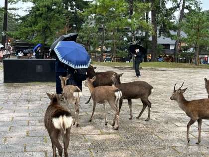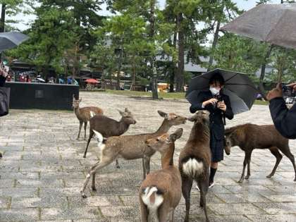 鹿せんべいをあげるとどこまでも、お友達だと思ってついて来ます!