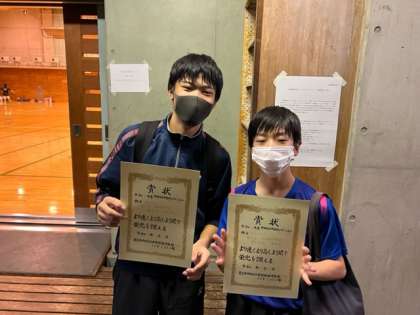 本日午前中に男子シングルス、午後に男子ダブルスの個人戦が駒場東邦中学校において行われ、2年の一杉くんが5位、2年の梅津くん角田くんペアが6位に入賞しました。フルセットの連続、それぞれ計6試合の激しい戦いを経て、とても良い経験ができたと思います。次こそはベスト4に入れるようにまた練習に励もう!お疲れ様でした!(松坂)