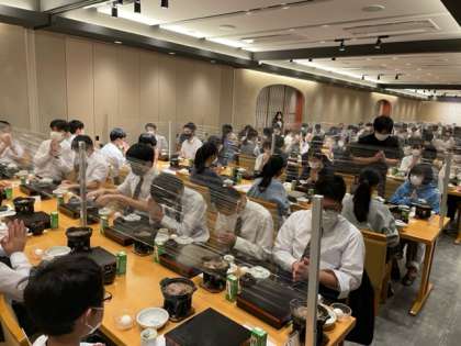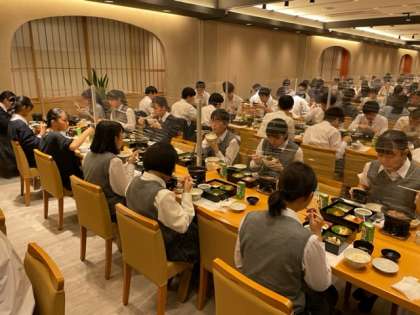無事、夕食が始まりました。250人で黙食頑張っています。