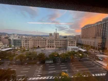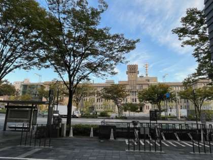 朝から快晴の京都市内。目の前にあるのは昭和初期に建てられた今日市役所です。
