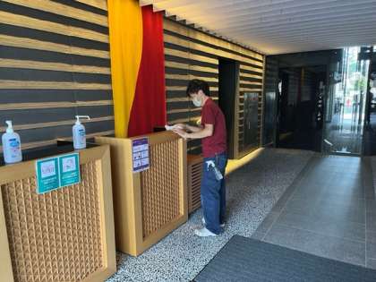 生徒たちが出発した後、ガラスや入口などを丁寧に掃除をしてくださる方がいました。このような方の存在があるからこそ、2泊3日11期生のみんなが快適に過ごせるのですね。