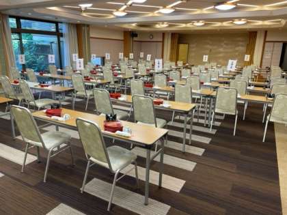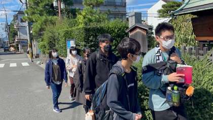 こちらは5,6組の昼食場所の聖護院御殿荘です。一番乗りの班が到着しました。感染対策もしっかりとされています。