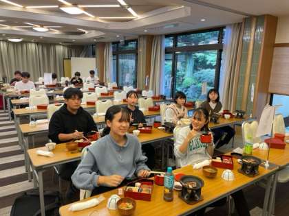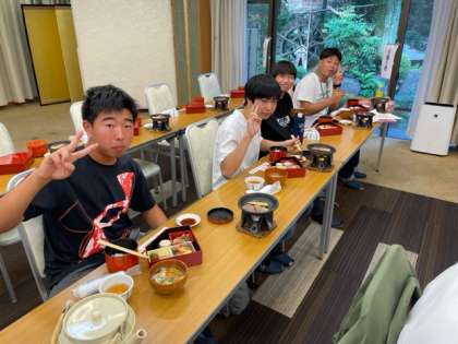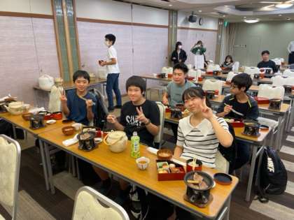 美味しそうな匂いとジューっという音が溢れています。生徒の声は全く聞こえません。黙食頑張っています。