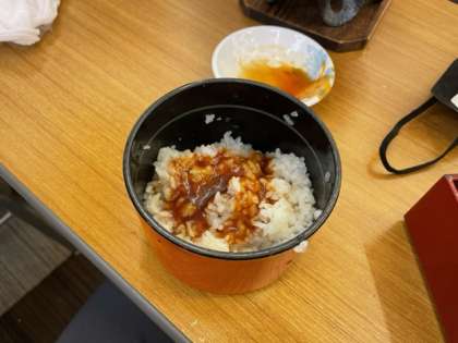 御殿荘ではみんなゆっくり食べています。おかずがなくなってもタレで粘り強く食べています!この子はこれで三杯目。