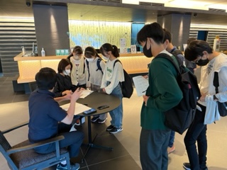 時間通りに到着!元気に帰ってきました。お土産を手に、満足気です。チェックを受けて順番に入浴です。(大橋)
