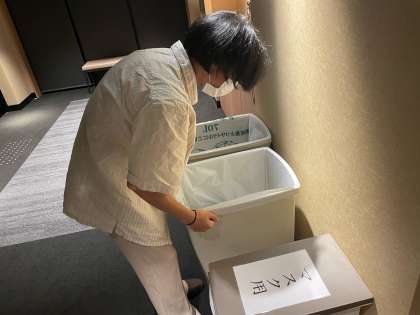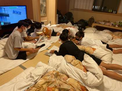 レクが終わっても落ち着いて班会議で明日の行程を確認して、外れたゴミ袋を付け直す生徒たち、素晴らしいと思います。