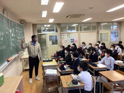 初めは「英語聞き取れないかも」と言っていた生徒もいましたが、リチャード先生がわかりやすくお話ししてくださったので、ロッキー山脈や五大湖の豆知識、アパラチア山脈の成り立ちなど楽しく学んでいました。(小川)