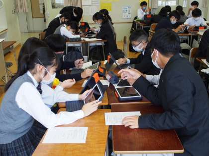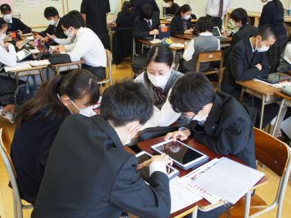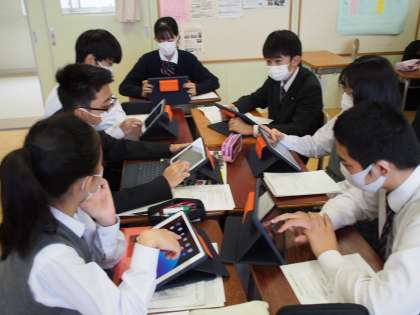 今回11期生は修学旅行にiPadを持参し、あちこちで撮影しています。今日はその動画、画像の編集作業をしています。予定では編集した動画のコンテストを行うとのこと。