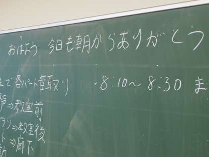 今週から朝練習が始まっています。それにしても、「ありがとう」のフレーズは本当にすてきです。聞けば、12期生が昨年度の学芸発表会の時に書き始めた言葉とのこと。
