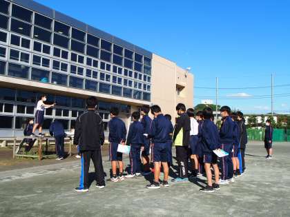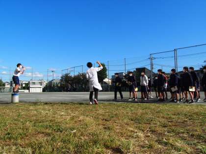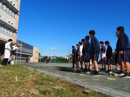 放課後の合唱練習のひとコマです。校庭は感染症対策としては安全で、青空をバックに気持ちがいいけれど、声が響かないという点ではがんばって声をださないと、達成感をえられません。指揮者にも先生にも気合が入ります。
