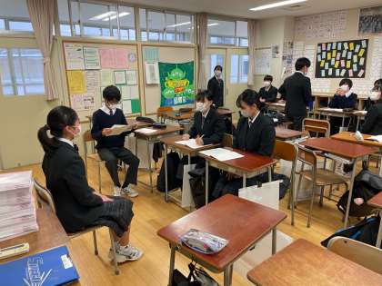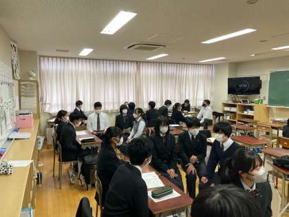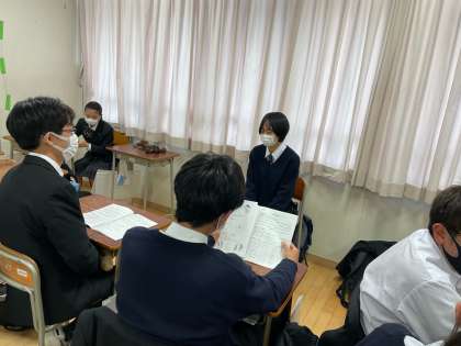 昨日6時間目には面接シミュレーションを行いました。班ごとに役割分担して入室から退室までの流れを確認しました。