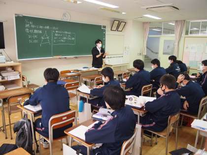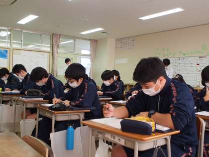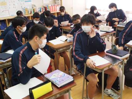 相似な図形をまなんでいます。いつものように3年生はしっかりメリハリがついた授業態度です。集中するところ、隣近所の人と相談するところ、ともに集中しています。