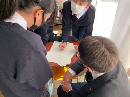 休み時間には課題を教え合う生徒の姿がありました。面談で忙しいですが、期末考査もがんばって!