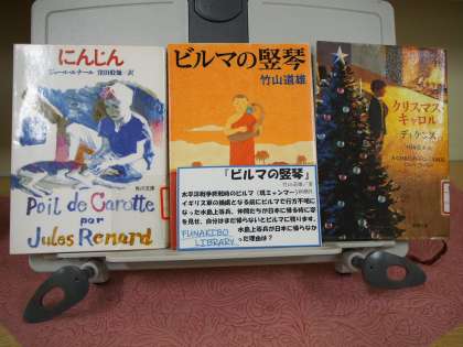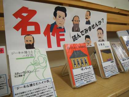 図書室前には読書の秋に向けたコーナーが設置されています。