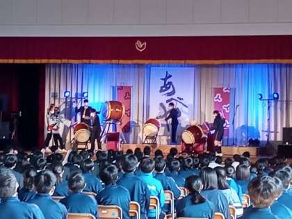 三味線、和太鼓、尺八、民謡、獅子舞を存分楽しみました。迫力ある生演奏、お笑い芸人のようなご兄弟の掛け合い、生徒の体験もふんだんに盛り込まれた素晴らしいステージでした。