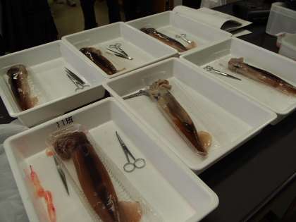 今日の12期生は理科でいかの解剖をする?という話を耳にし、さっそく理科室へ。ありました。教卓にならべられたいかです。みんなこれから始まる解剖に興味津々のようです。