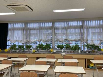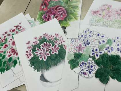 まだ花がたくさん咲いていた頃に2年生が色鉛筆で描きました。